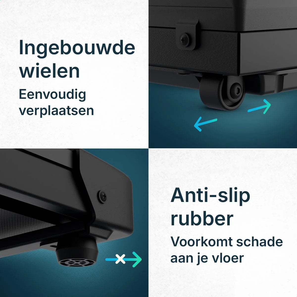 Ons loopvlak is opgebouwd uit 5 lagen, waardoor je altijd geniet van de schokabsorptie. Dit beschermt je knieën en gewrichten, wat zorgt voor een comfortabele, veilige en fluisterstille training.