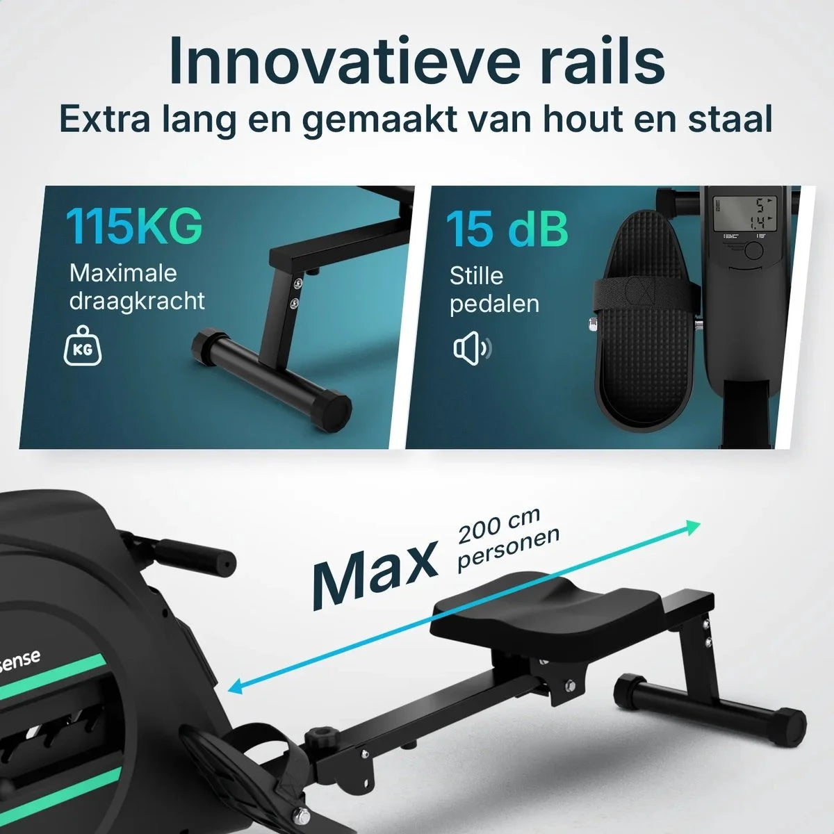 Zorgt voor een zeer stille en soepele roei-ervaring, zonder onderhoud. Perfect voor beginners en voor mensen die in een appartement of stille omgeving willen trainen.