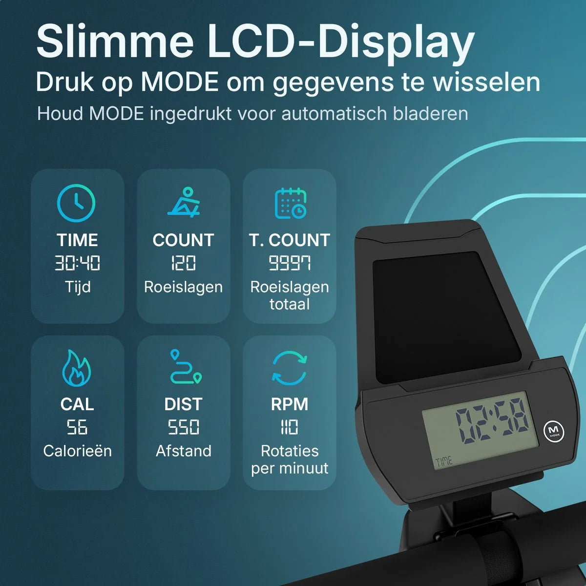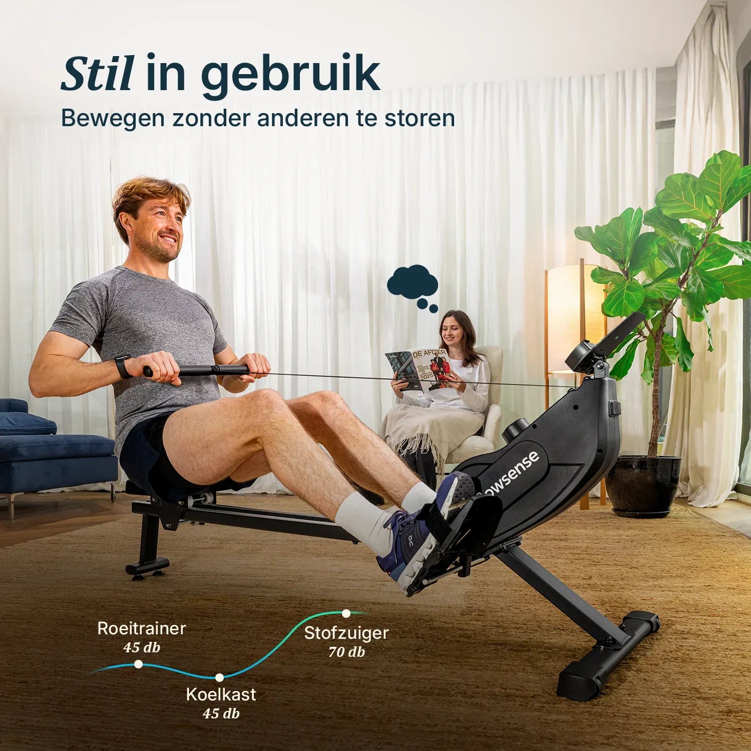 Zorgt voor een zeer stille en soepele roei-ervaring, zonder onderhoud. Perfect voor beginners en voor mensen die in een appartement of stille omgeving willen trainen.