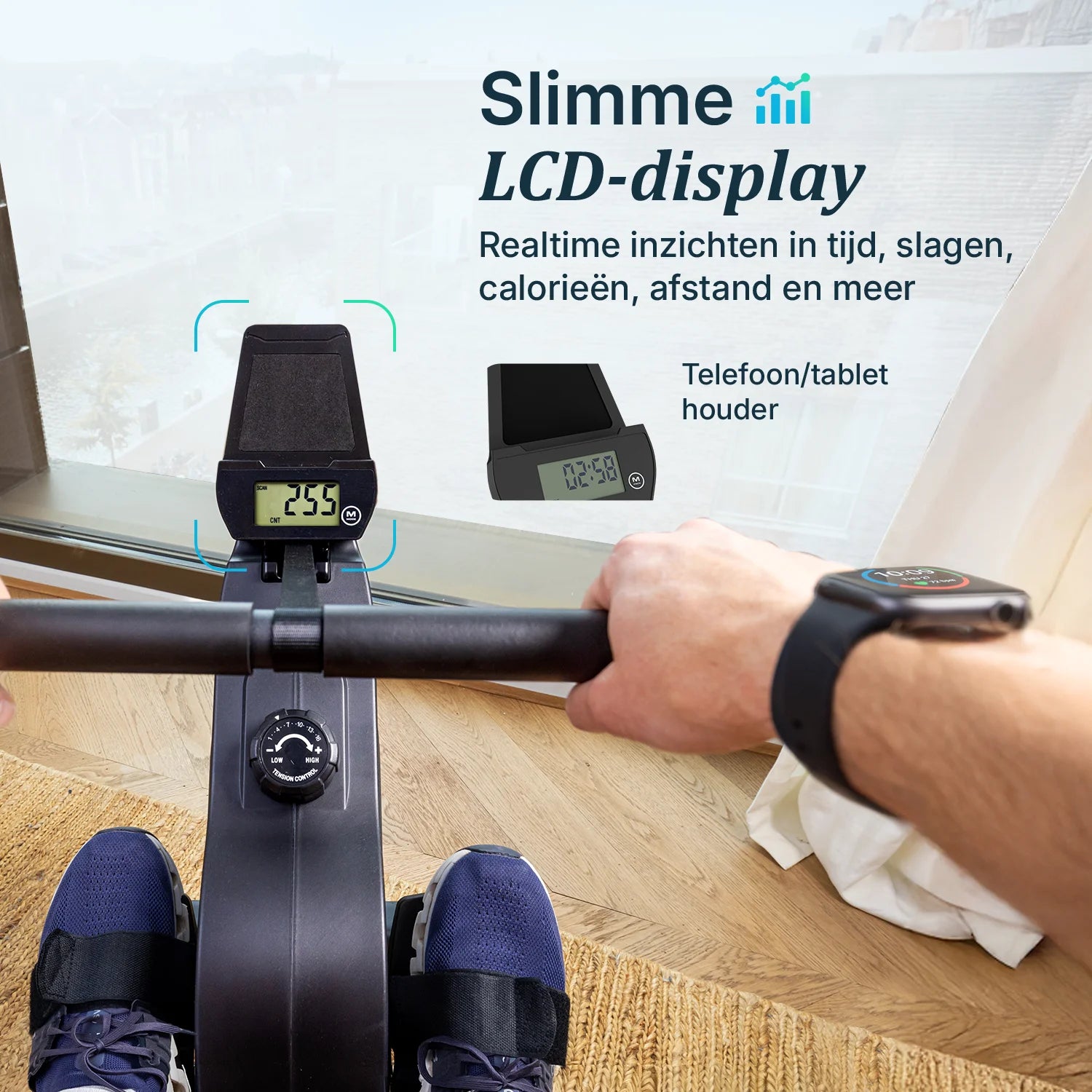 Werkt op basis van een ventilator die lucht verplaatst: hoe krachtiger je roeit, hoe sterker de weerstand is. Dit zorgt voor een realistische trainingsbeleving.