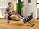 De roeitrainer is perfect voor thuisgebruik. Het compacte, verticaal opklapbare ontwerp maakt opbergen eenvoudig. Verplaats de roeitrainer moeiteloos met de ingebouwde transportwieltjes.